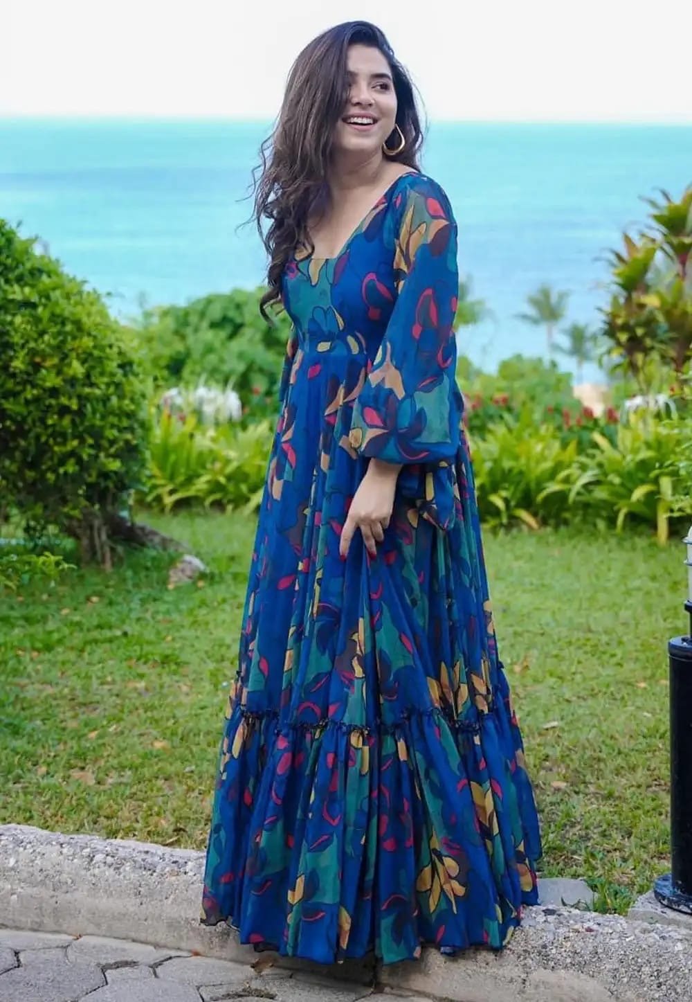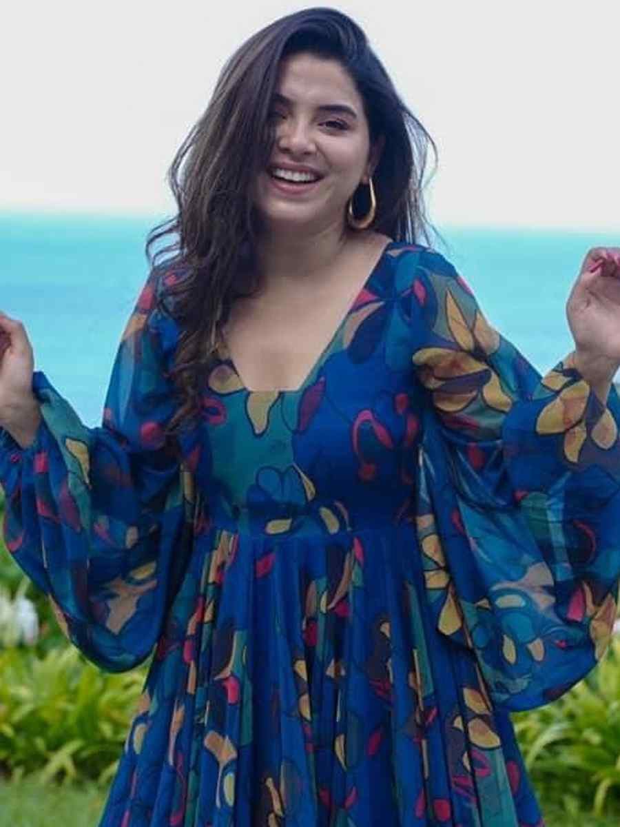 WomenDigital Printed Georgette Gown in Royal Blue