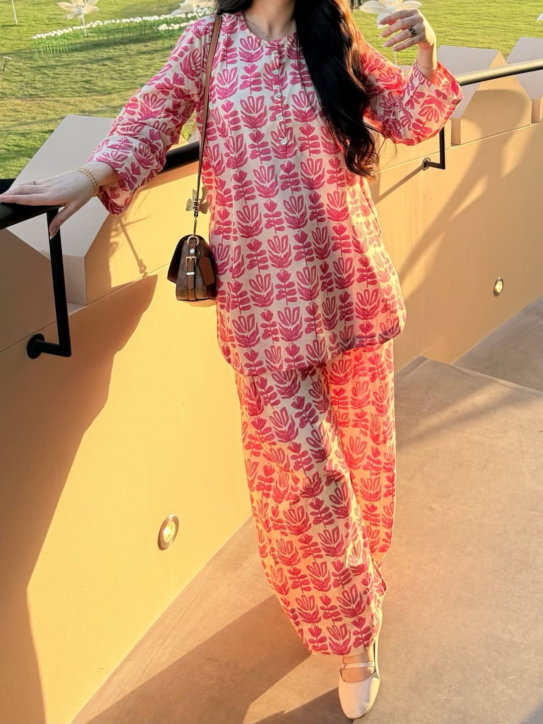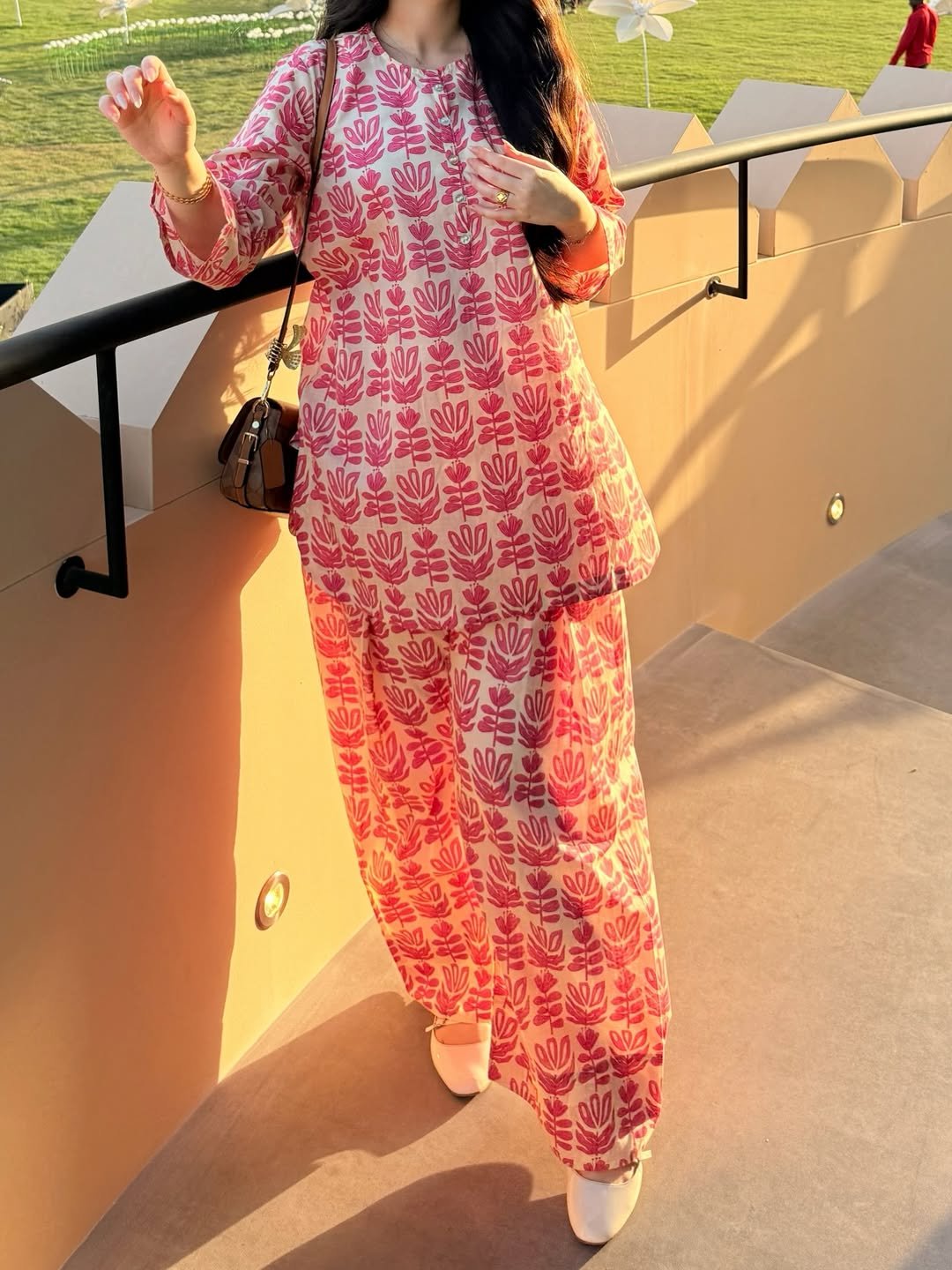 Blue Printed V-Neck Pleated Anarkali Kurta With Palazzos & Dupatta